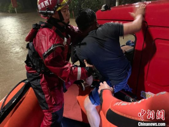 桂林市资源县遭遇暴雨袭击引发内涝 消防连夜营救被困民众