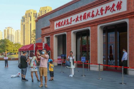 2021年10月3日,人们在中共一大纪念馆前拍照留影,新华社记者 王翔 摄