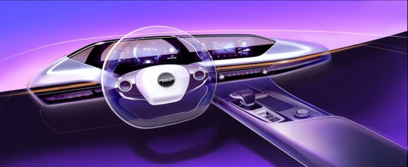内饰渲染让视觉浸入梦幻宇宙,营造出动感环抱氛围,蓝白内饰相映成趣,营造一种“瀚海辰星”的品质之美。