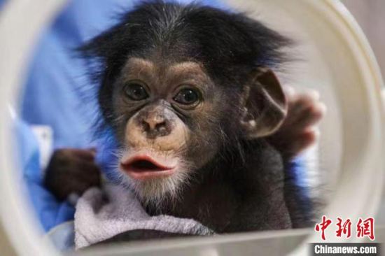 黑猩猩小宝宝的体重由出生时的1750克增长到2600克 。 上海野生动物园供图