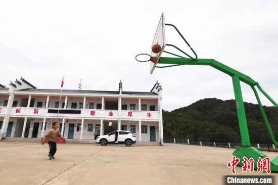 图为梅湖村的一名孩子在打篮球。 赖家权 摄