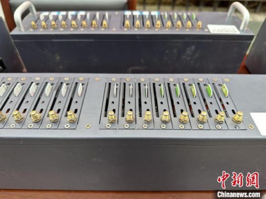 图为警方查获的电信网络诈骗工具,俗称“猫池”,诈骗分子通过该设备可同时向多个用户拨号。 陈沿佑 摄