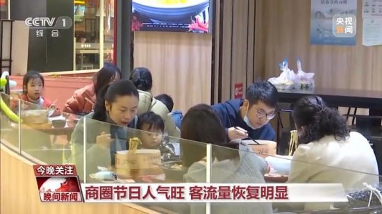 过节自然少不了舌尖上的美味,餐饮消费正逐步复苏。在兰州市中心的商场餐饮区,虽然过了用餐高峰,依然有不少人在等位。在四川广汉,60米长的夜市,卤味烧烤、经典小吃等各类美食吸引了大批食客。而在深圳的这家商场,不少餐馆已经门庭若市,排起长队。餐厅负责人表示,近些天的客流量上升明显。