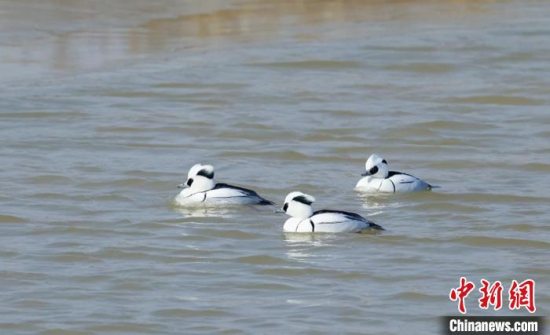 图为在乌梁素海栖息的斑头秋沙鸭。(资料图) 贾甜 摄