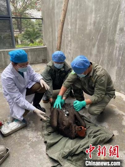技术员为秃鹫体检。 广西陆生野生动物救护中心供图