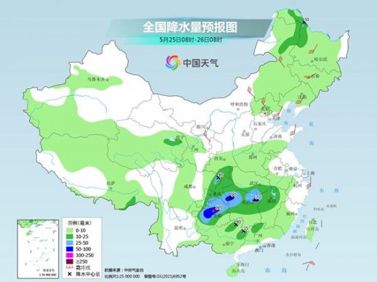 25日开始至28日 中东部新一轮较强降雨过程来袭