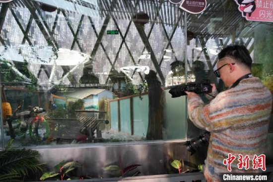 图为文旅达人在西宁熊猫馆进行拍摄。马铭言 摄