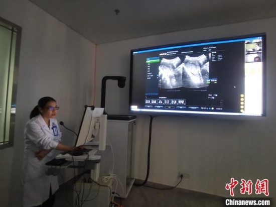 1月9日,东方市医疗健康集团总医院超声科医生与感城分院医生实时联动,为一名患者做超声检查。记者张茜翼 摄