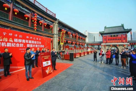 3月11日是农历甲辰龙年二月初二,即中国民间传统节日“龙抬头”。天津邮政携手杨柳青画社于11日下午在天津古文化街戏楼广场,联合举办“龙抬头”杨柳青年画民俗文化邮资机戳纪念封、明信片发行活动。