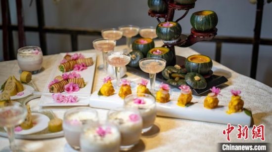 3月9日,云南昆明,烹饪大师陈生合以樱花为食材制作了樱花宴。(受访者供图)