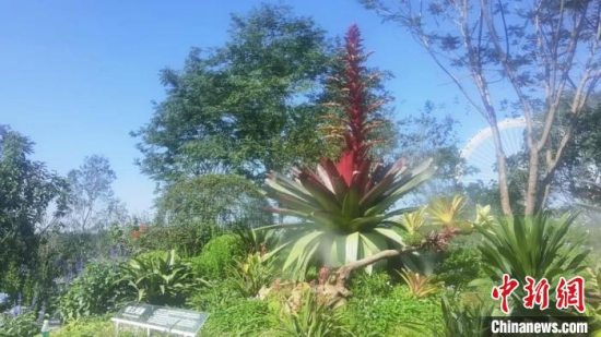 此次在成都世园会上海展园展出的这株帝王凤梨,由上海辰山植物园提供,也是离开温室在户外的首次亮相,栽植时已经形成花序。