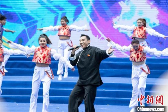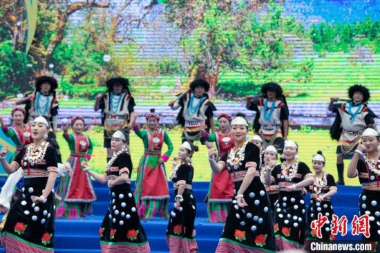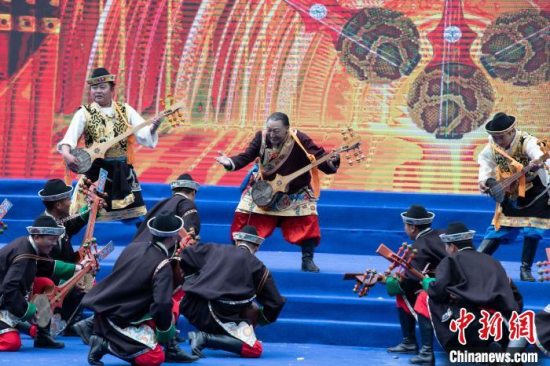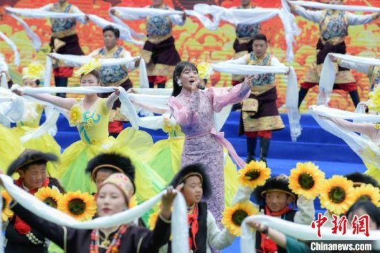 图为开幕式上的文艺演出现场。贡嘎来松 摄