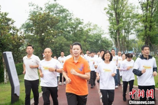 图为李雪芮(中)带领大家开启欢乐跑。 闫兆红 摄