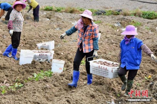 近日,广东台山市,北陡镇的番薯田迎来丰收。陈泽群 摄