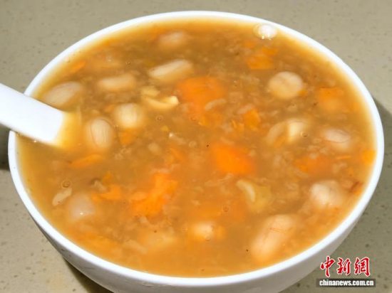 在广东台山市,用番薯烹煮的“薯酸粥”不仅是当地的传统糖水,更是小孩满月时与亲朋戚友分享“添丁”喜悦的传统味道。李晓春 摄